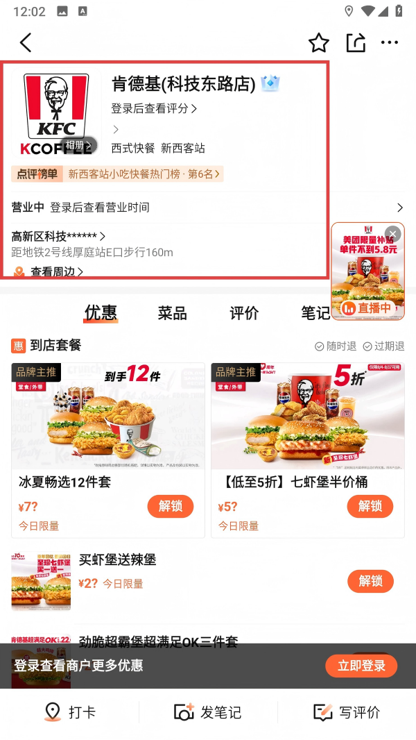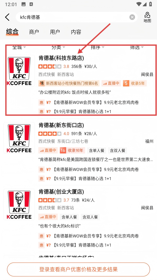 3、选择目标商家点击离自己近的店铺,进入详情页。