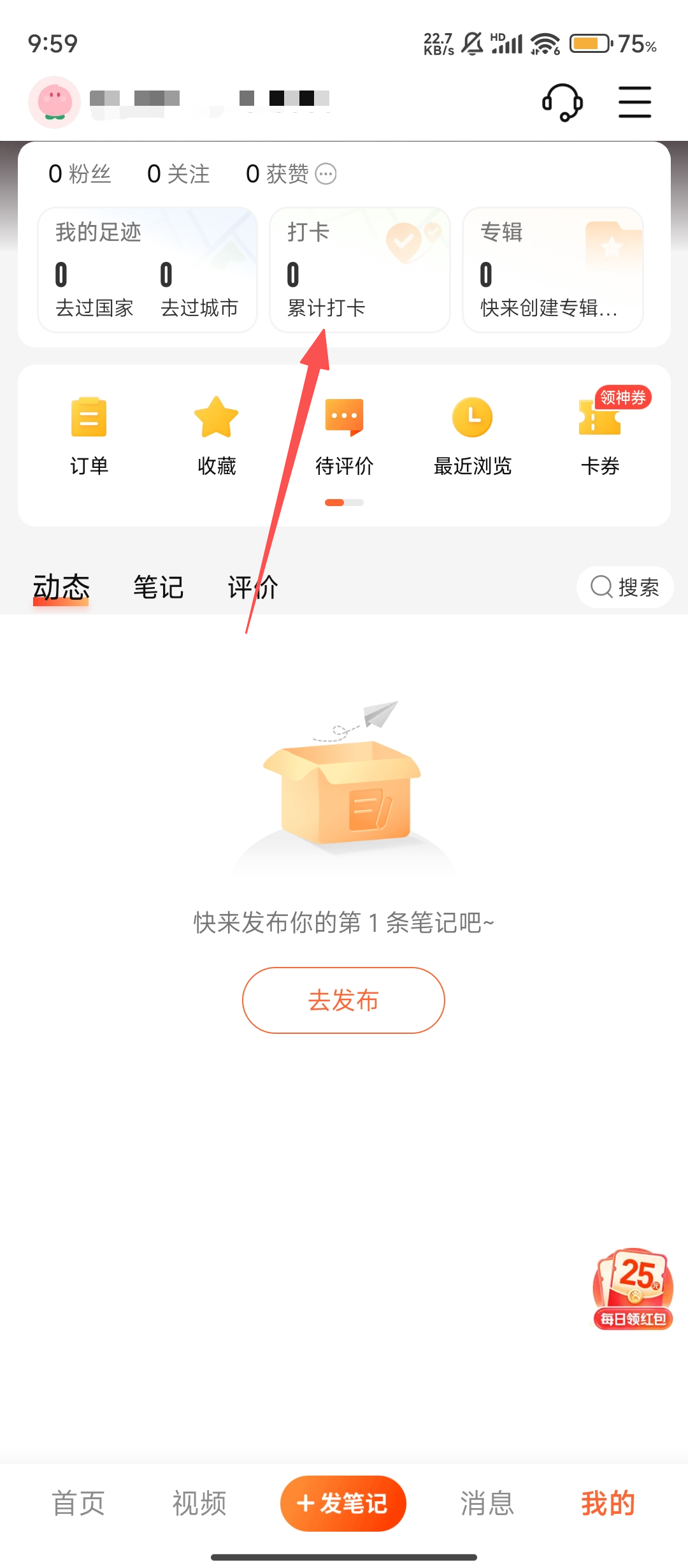 1、我们进入【我的】页面后,点击【打卡】模块里的【累计打卡】,就能进入打卡操作界面啦。