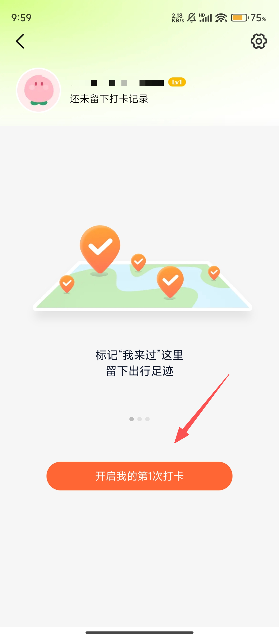 2、在打卡界面,我们点击【开启我的第1次打卡】,就能进入可选择打卡地点的页面呀。