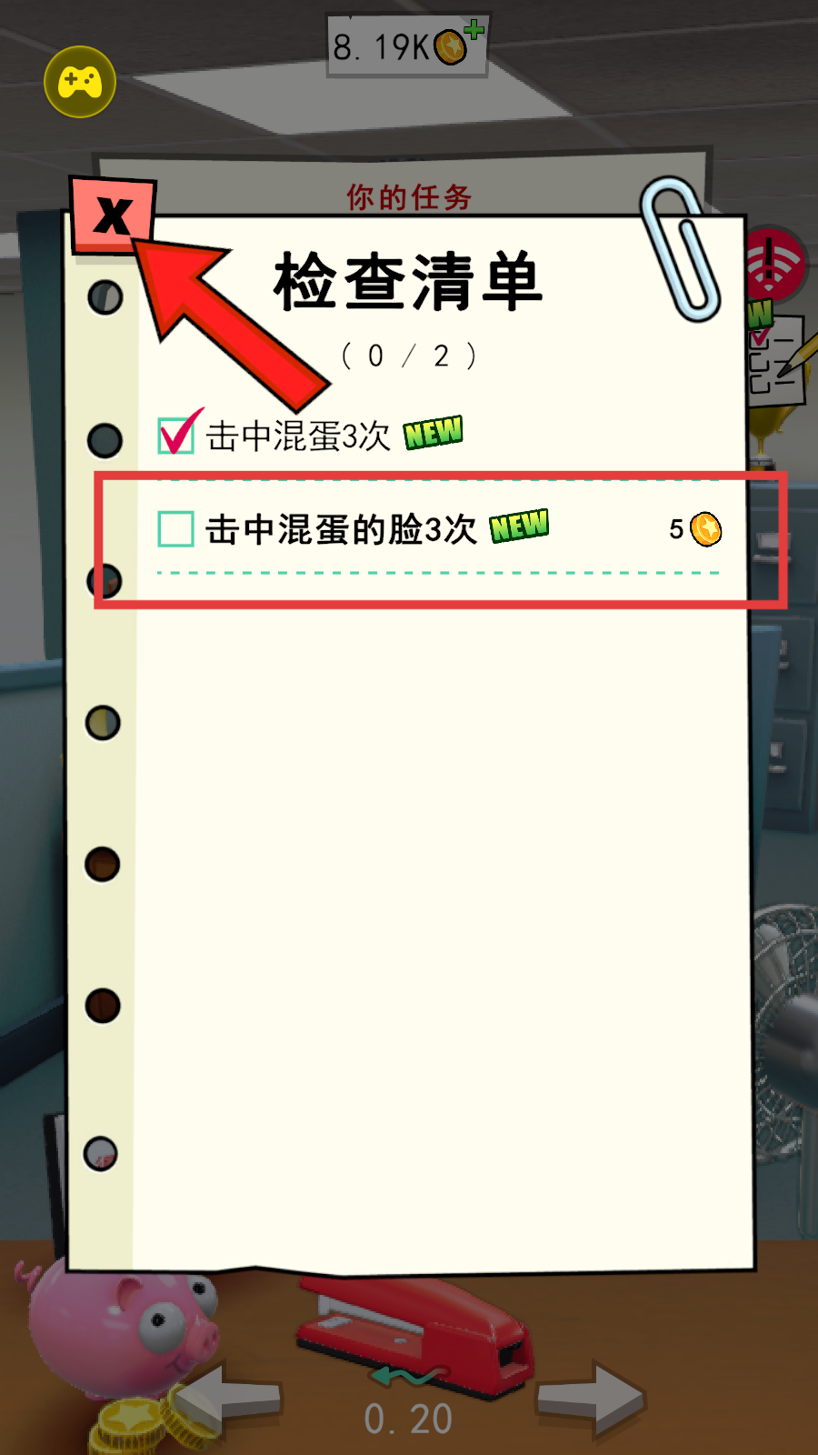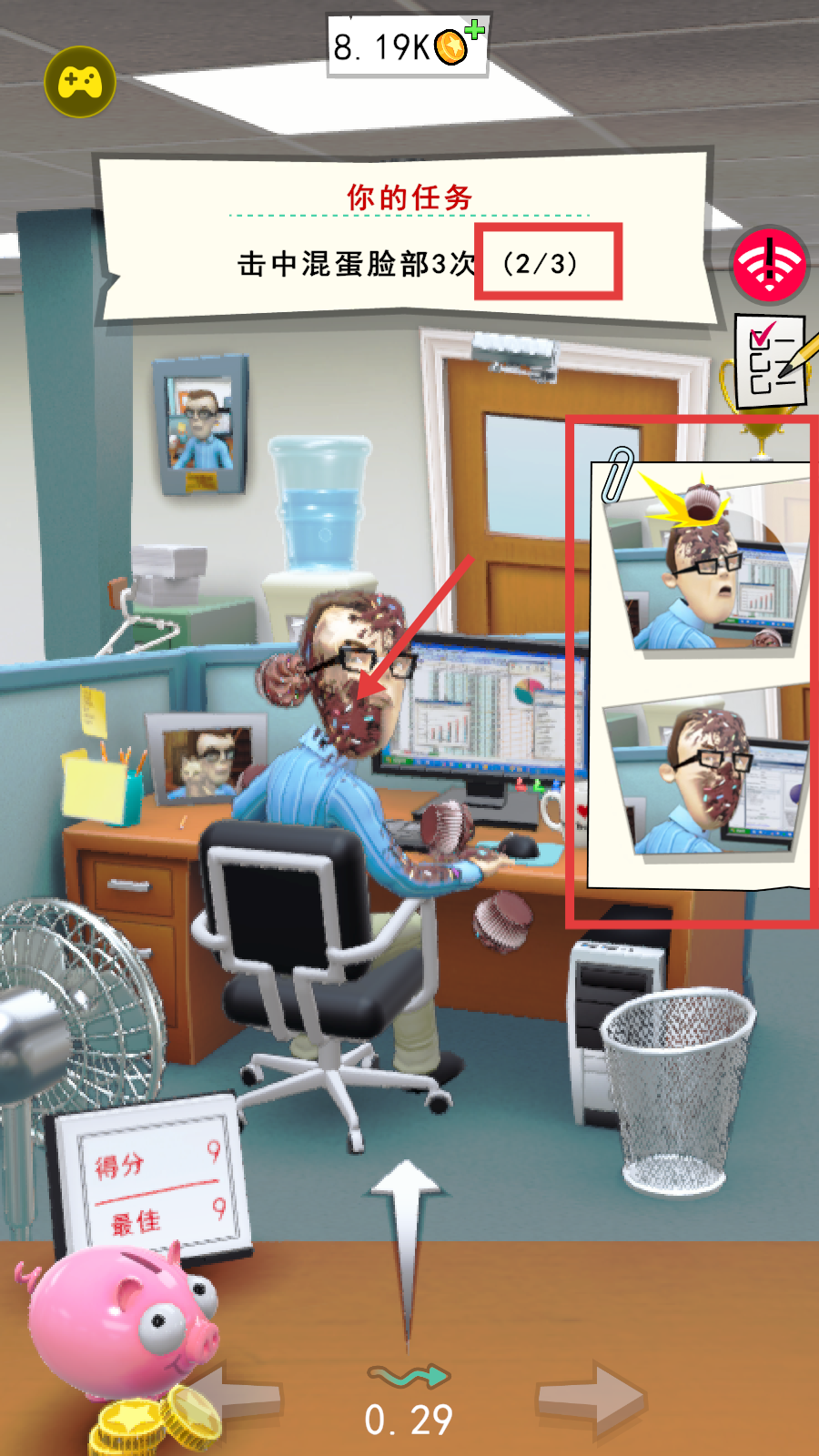 3、瞄准目标,击中混蛋脸部,完成任务进度。