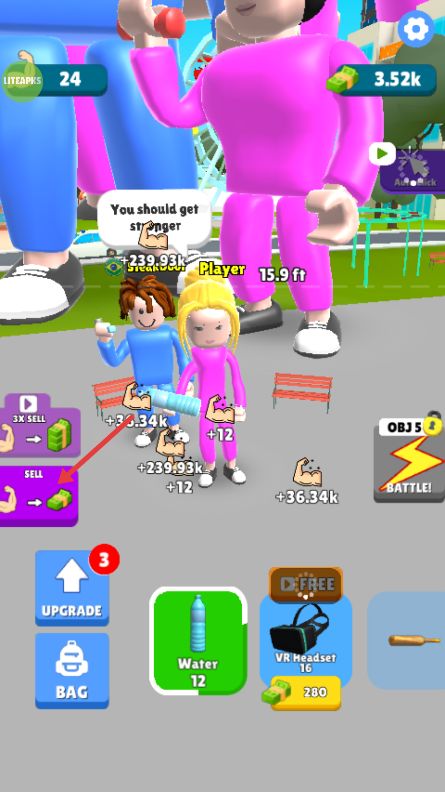 5、包含竞技对战与实力比拼,可以与其他玩家较量肌肉等级,检验训练成果并获得丰厚奖励。