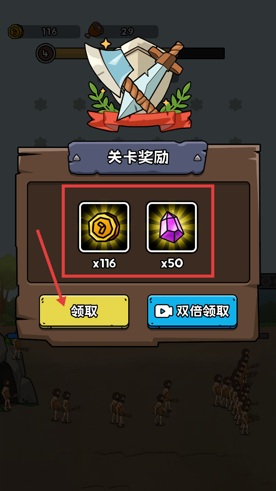 2、派遣原始人战斗,击败敌人获取金币。
