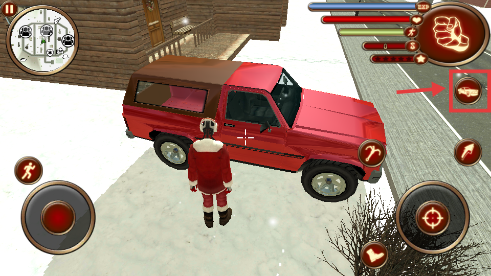 3、靠近车辆点击右侧【汽车】图标,可驾驶车辆,快速移动或撞击敌人,提高任务效率。