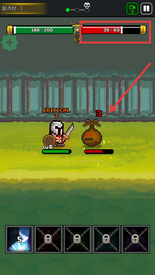 2、战斗时关注敌我进度条,通过普攻/技能输出,积累伤害推进关卡,击败怪物得资源。