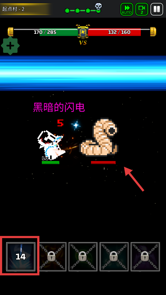 3、释放【黑暗的闪电】技能打蠕虫,关注技能冷却【14】,合理输出。