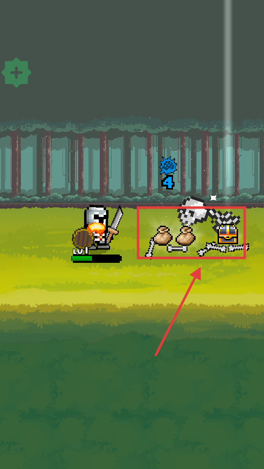 4、击杀骷髅后,拾取掉落【袋子】-【宝箱】,获取道具强化战力。