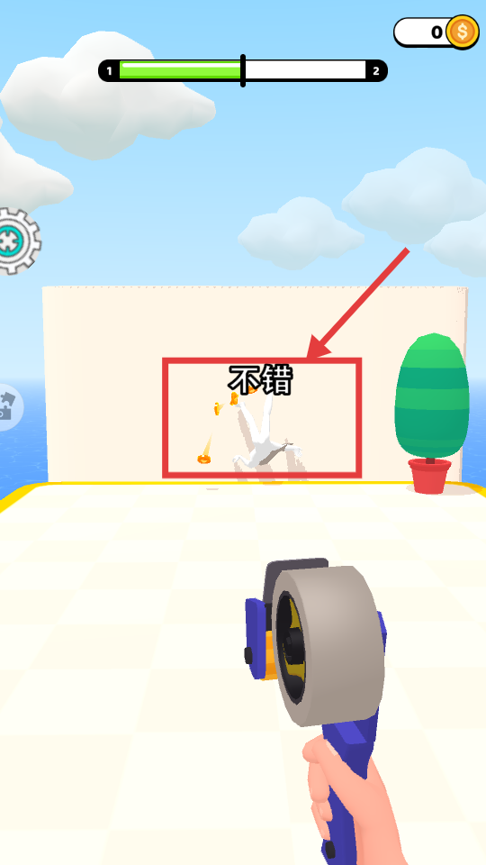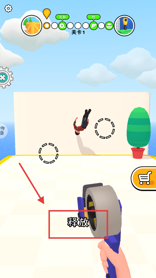 1、瞄准敌人后点击【释放】发射胶带,需保证胶带附着固定物以击杀敌人。