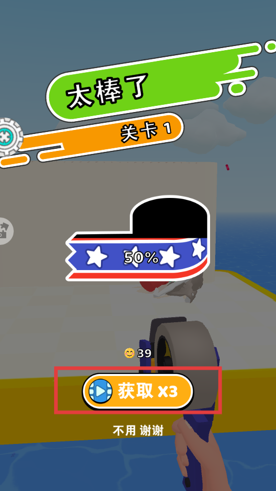 4、关卡完成后,点击【获取x3】(看广告)可获三倍奖励,加速资源积累。