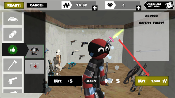 3、在装备页面选中护甲道具,点击右下角的购买按钮,消耗2500货币获取护甲。