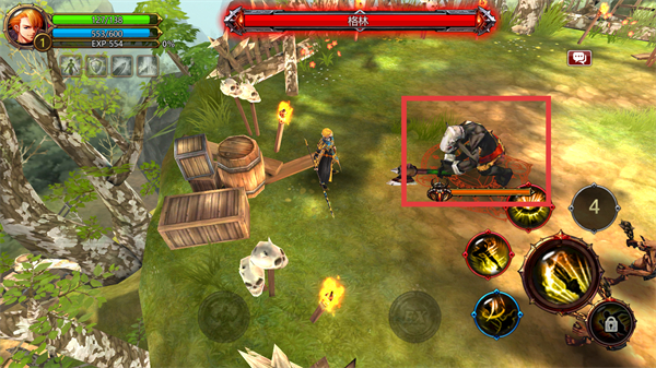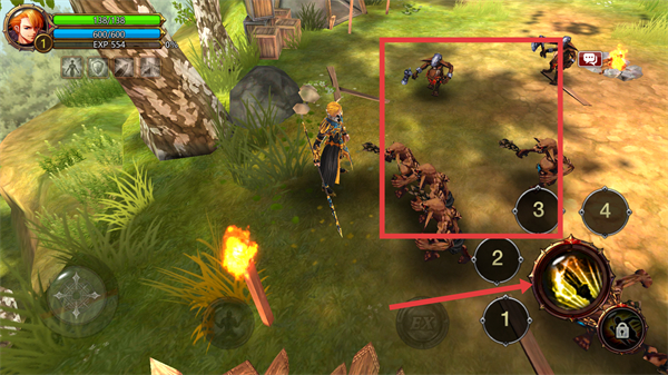2、战斗中锁定敌方单位,点击右侧【1】【2】【3】【4】技能键释放技能,优先攻击集群敌人,快速清理战场。
