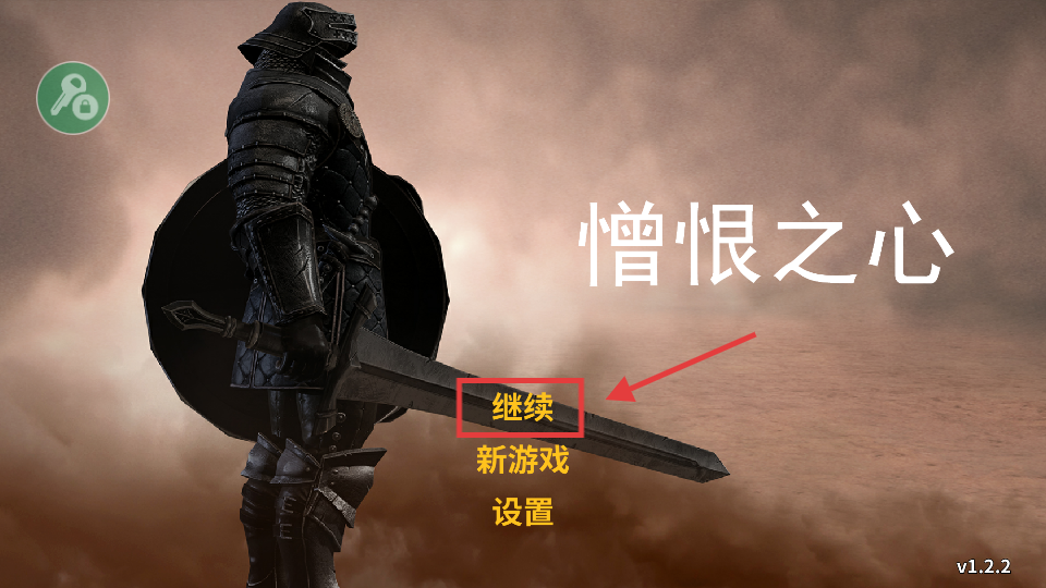 1、进入游戏界面,点击【继续】按钮可加载已有进度,快速开启骑士的冒险之旅。