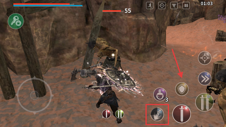 4、面对持斧强敌,点击右下角【手掌】图标,触发防御或反击,减少伤害并创造进攻机会。