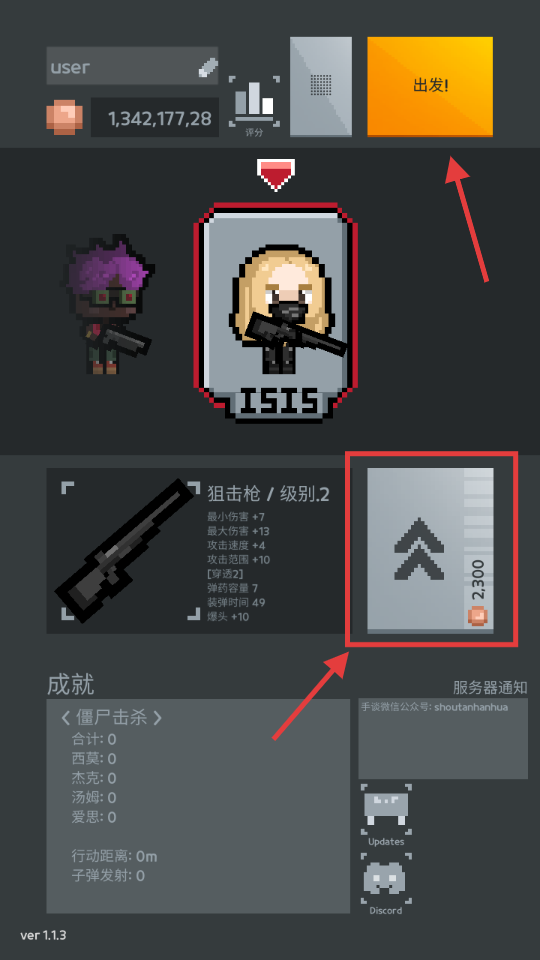 1、点击【出发!】开启关卡,升级武器提升属性,【狙击枪-级别.2】-7伤-13大伤助力突围。