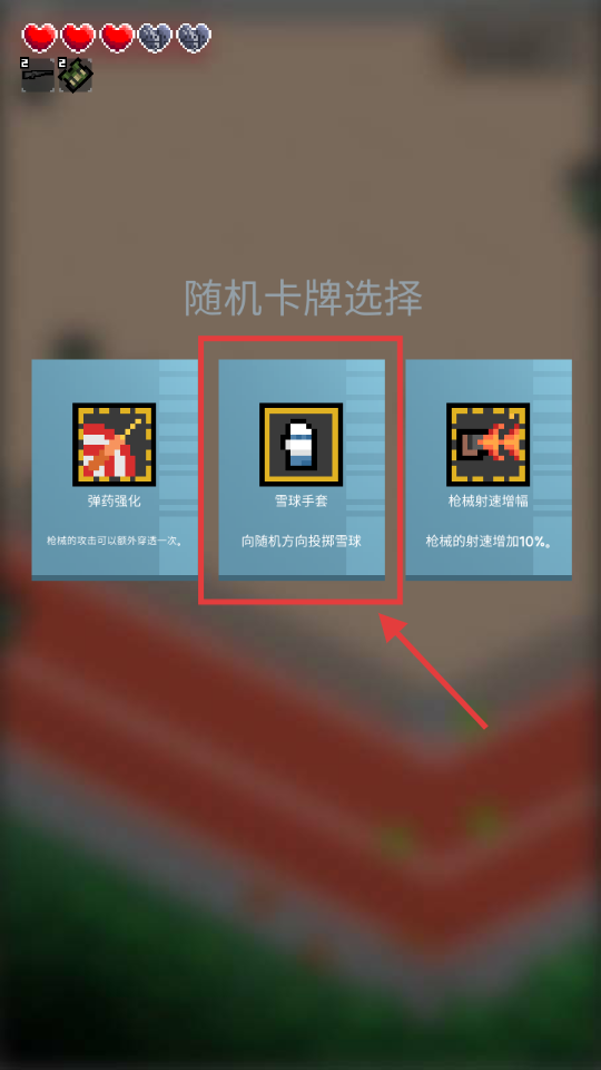 4、随机卡牌选【雪球手套】,向随机方向投掷雪球辅助战斗,拓展输出与控制手段。