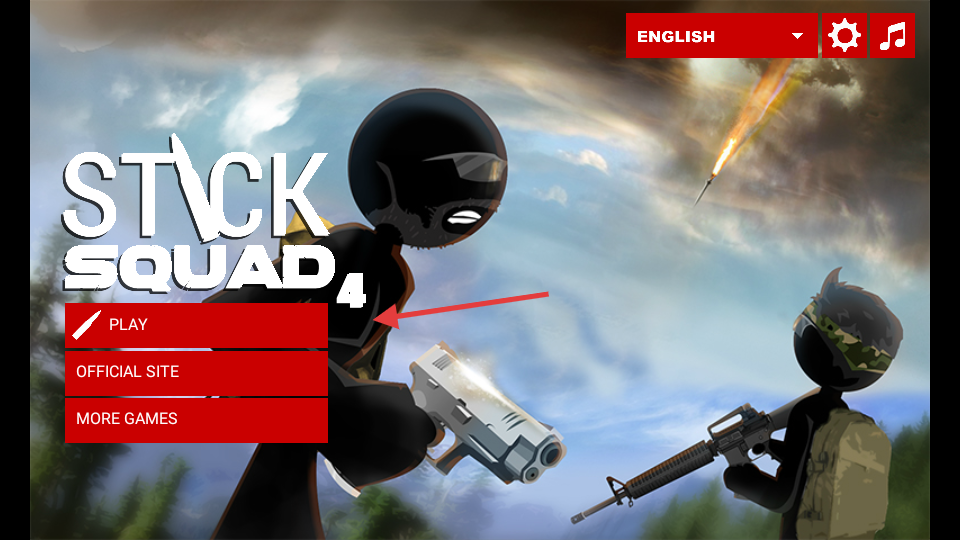 1、主界面点击【PLAY】按钮,开启火柴人狙击挑战,进入任务场景准备狙击目标。
