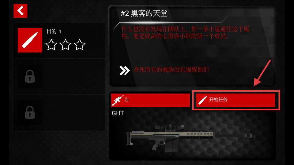 1、点击【开始任务】进入【#2-黑客的天堂】任务,需悄无声息消灭所有威胁。