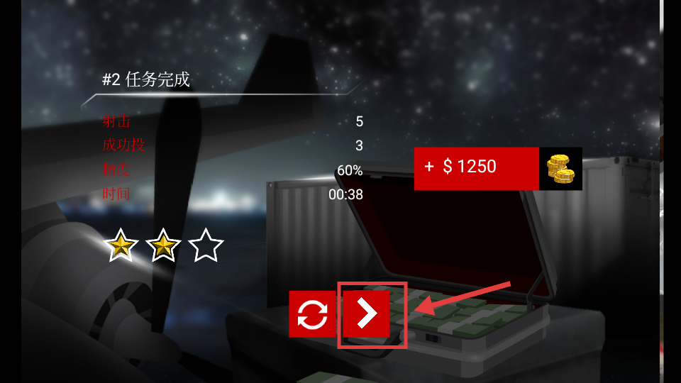 4、任务完成后点击【继续】按钮,进入下一关或结算,获取【$1250】奖励。