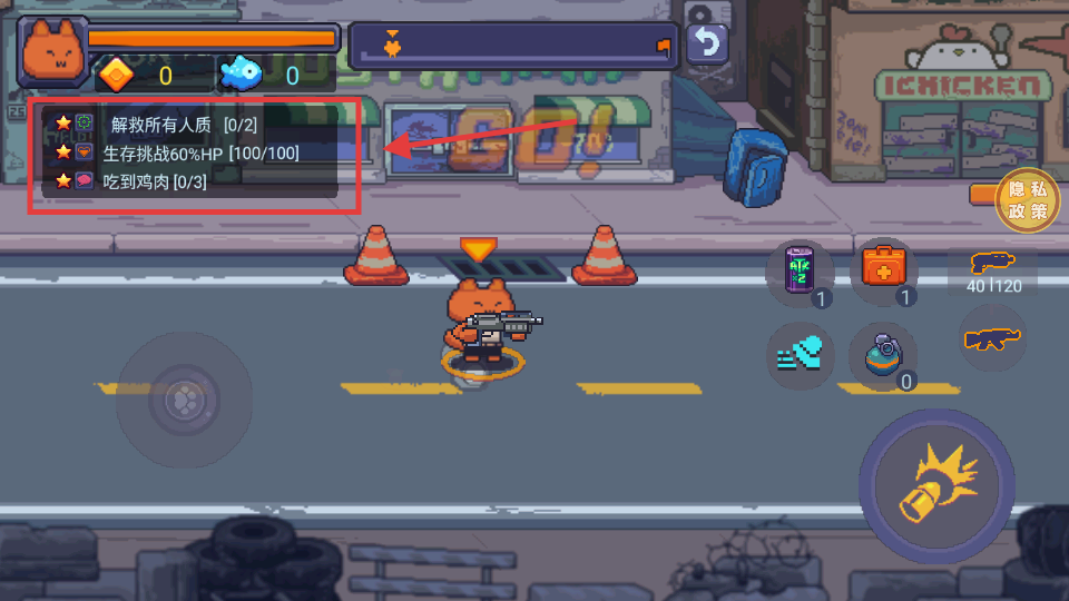2、关注左侧任务列表,按【解救人质-生存挑战-吃到鸡肉】目标行动,完成任务获取星级奖励与资源。