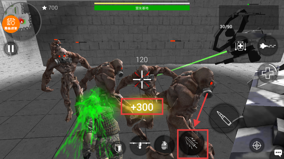 3、遭遇强力变异敌时,用【导弹】按钮高额输出,同时获取【+300】得分。