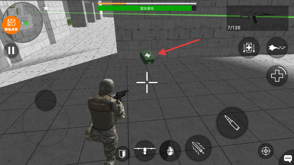 4、战斗中发现【医疗包】,及时移动拾取,恢复生命以持续作战。