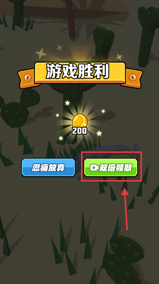 4、过关后出现游戏胜利界面,点击双倍领取按钮,可获取更多金币用于强化。