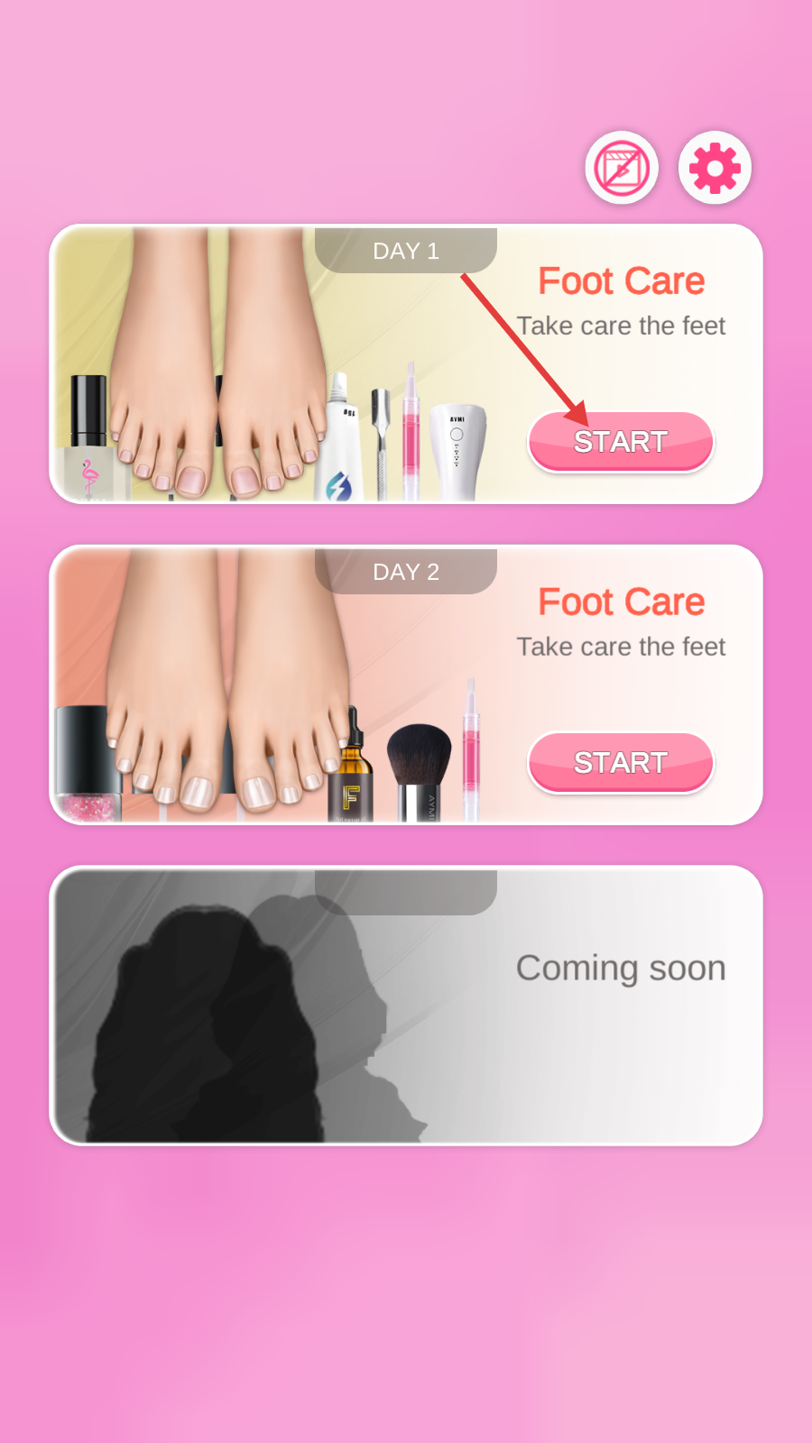 1、进入足部护理游戏,在关卡选择界面点击【START】开始护理。