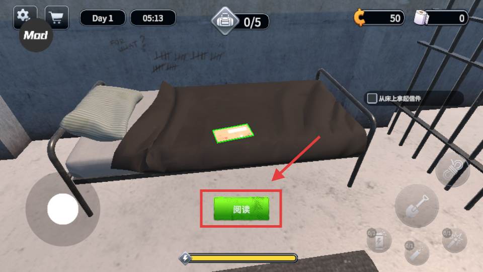 1、点击按钮阅读床上的便签获取逃脱线索。