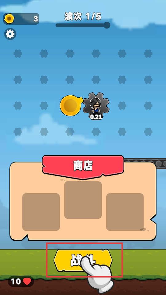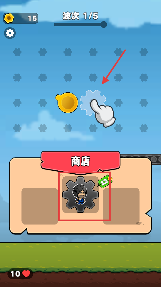 1、在商店点击带士兵的齿轮,花费金币解锁后将其放置到空中,为战斗部署战力。