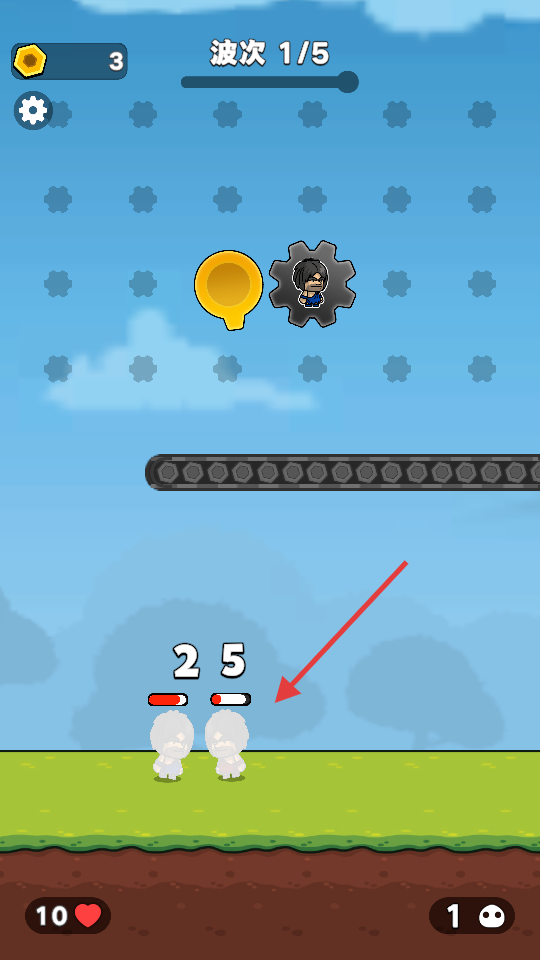 3、战斗中关注敌人血条与数值,依靠齿轮士兵的攻击逐步击败敌人,推进波次进程。