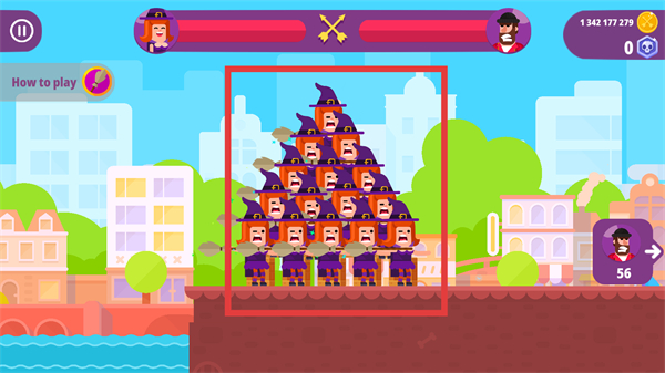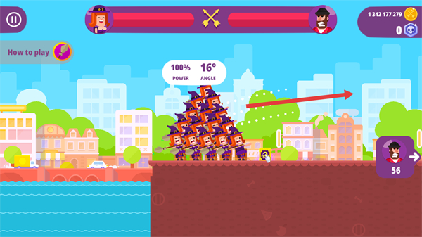 2、观察己方角色堆叠成的群体阵容,准备调整攻击的力度与角度参数。