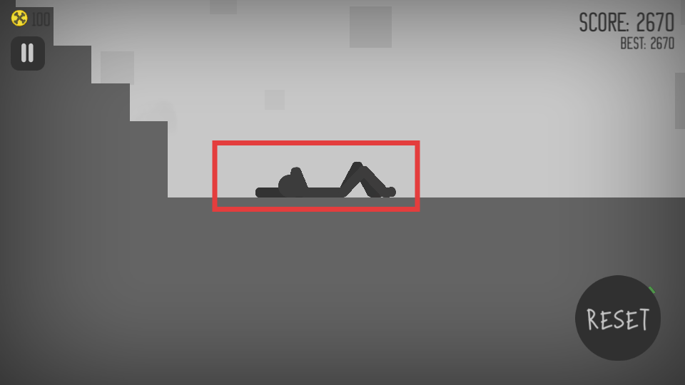 3、火柴人在坠落中途,尽量使其以复杂、特殊的姿态落地,如图中所示的摔倒姿势,以获取更高分数。