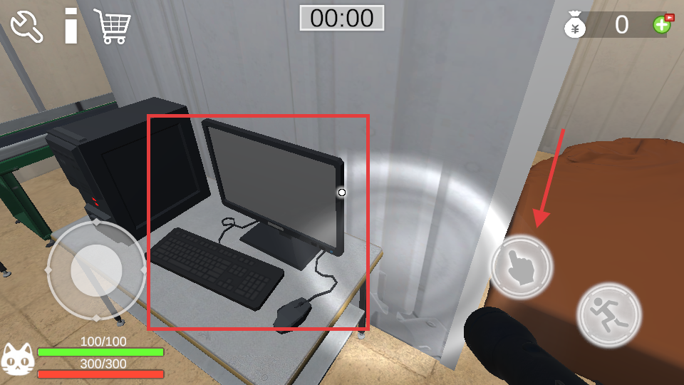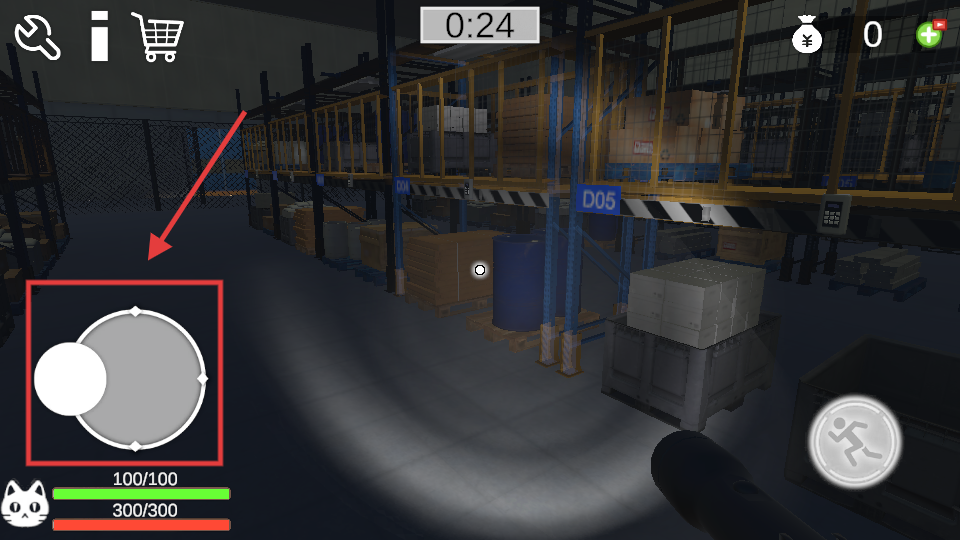 4、用左侧摇杆控制移动,探索仓库,留意怪物,寻找猫咪食物与逃生关键线索。