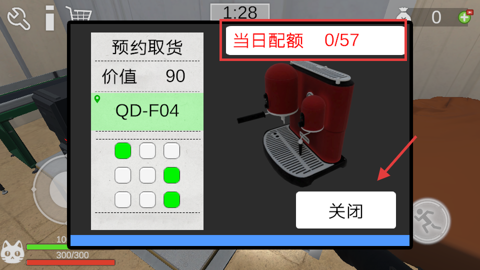 3、查看当日配额0/57,根据预约取货QD-F04位置,去仓库寻对应物品完成配额。