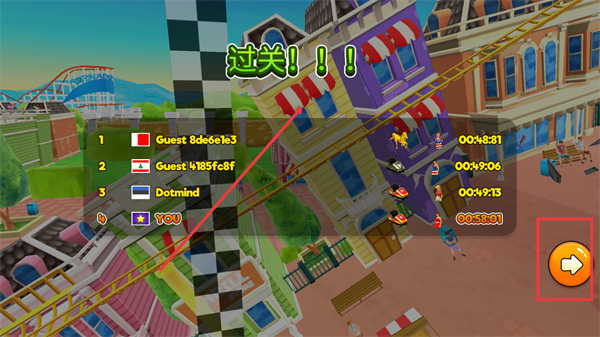 4、完成关卡后,点击【继续按钮】进入下一关挑战更高难度赛道。