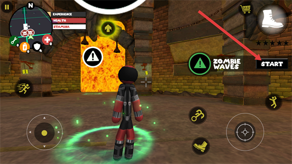 3、在场景内找到右侧的ZOMBIE WAVES模块,点击对应的START按钮开启僵尸波挑战。