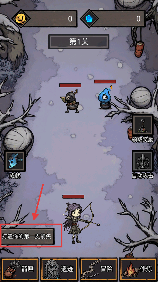 1、开局优先打造第一支箭矢,提升箭支攻击与生命属性,为战斗提供基础战力。