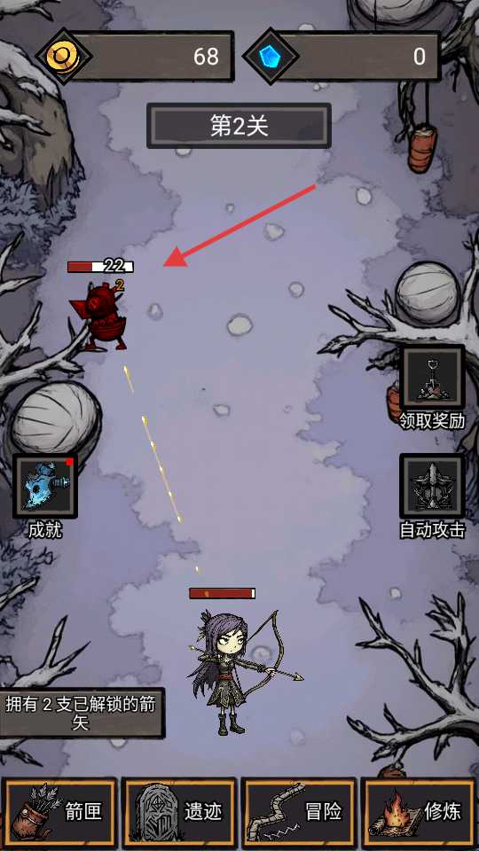 4、战斗时关注敌人血条,利用已解锁的箭矢快速攻击,高效推进关卡挑战。