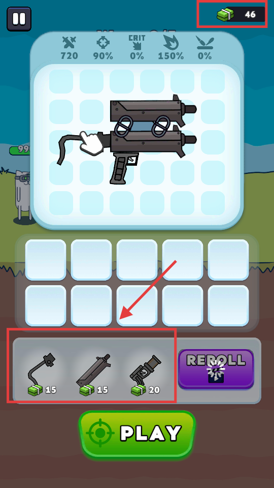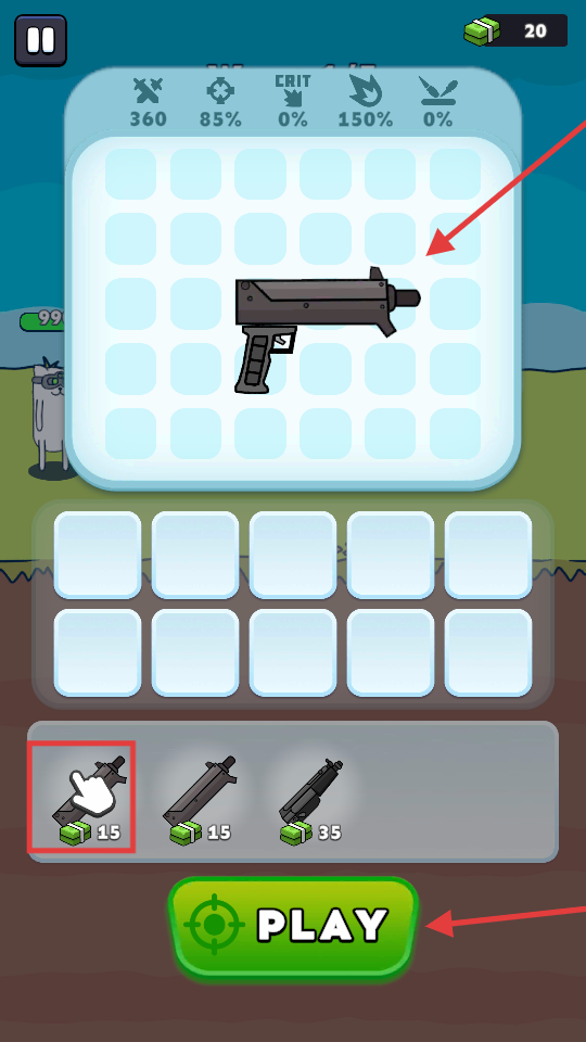 1、购买底部带15的武器,组装后点击PLAY,进入关卡迎战怪兽,开启射击挑战。
