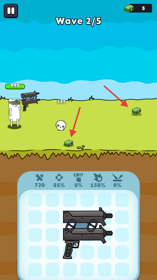 3、击败怪兽后,及时收集场地掉落的绿色钞票,积累资金用于后续武器升级或购买。