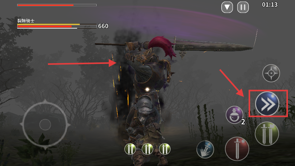 3、战斗时关注【裂隙骑士】血条【660】,合理使用攻击、防御技能,把握输出与防守节奏。