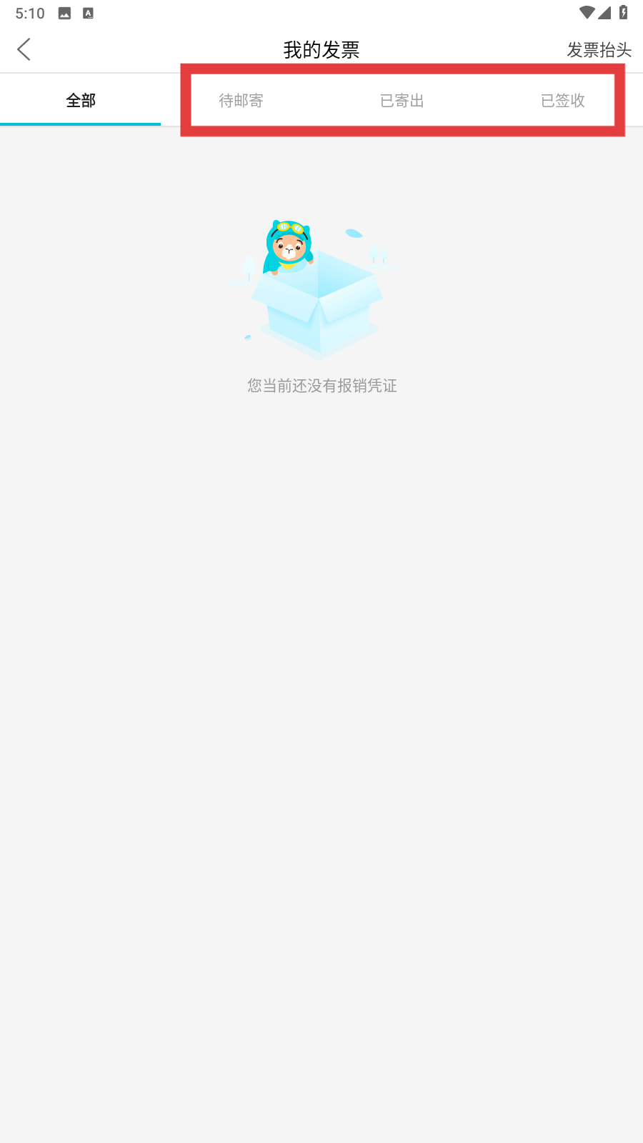 3、进入【我的发票】页面,可查看【待邮寄】、【已寄出】等发票状态,轻松掌握发票进度哦。
