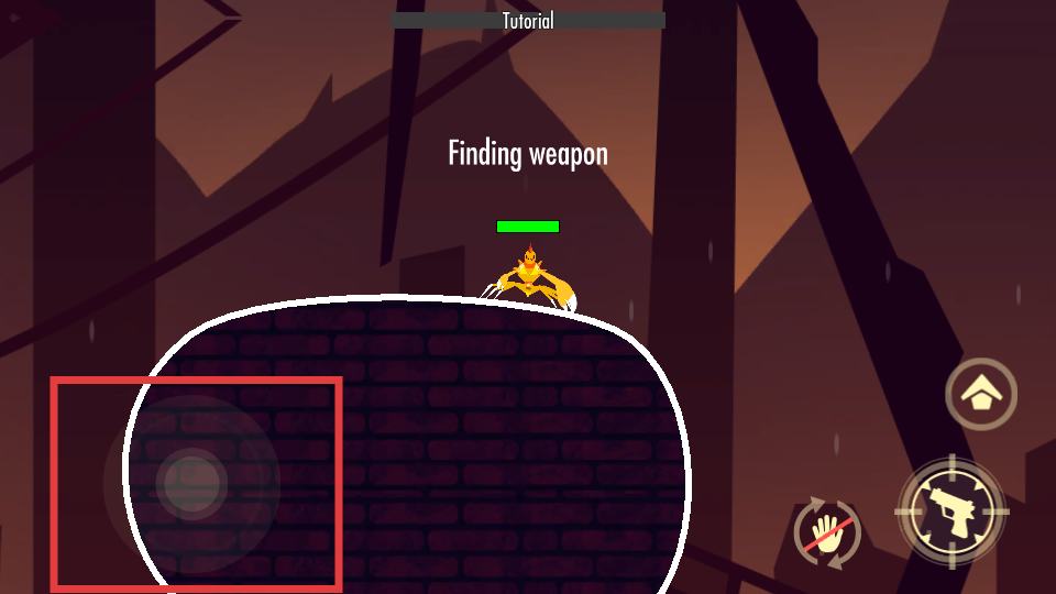 2、进入游戏后,通过操控红框内的【虚拟摇杆】,控制螃蟹移动寻找武器。