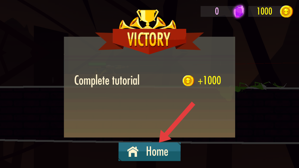 4、成功击杀敌人,出现【VICTORY】提示后,点击【Home】按钮返回主界面,准备新战斗。