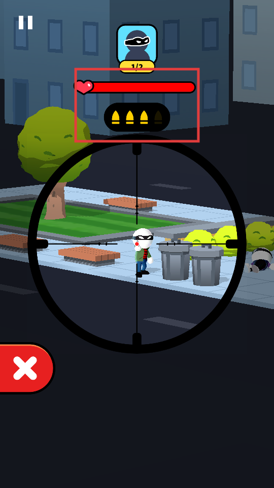 3、继续瞄准剩余的暴徒,注意观察生命值与弹药情况,完成击杀。