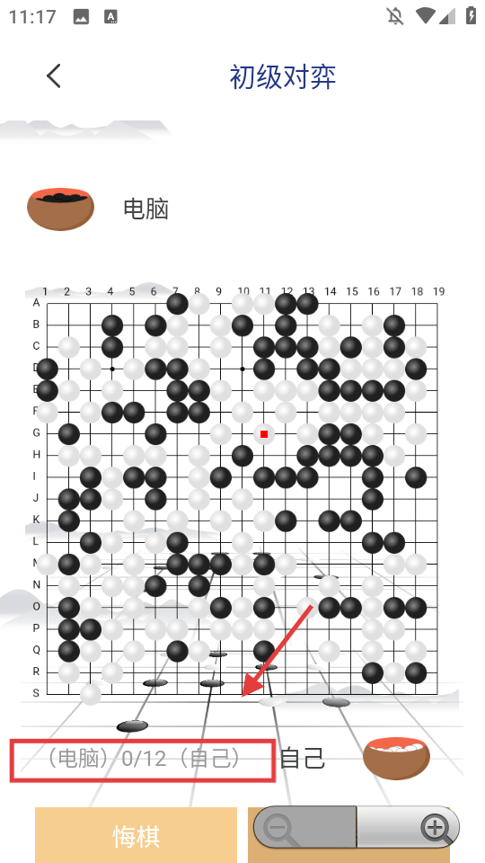 3、对局中,留意棋子气数,当己方棋子无气时会被提走,可选择悔棋操作。