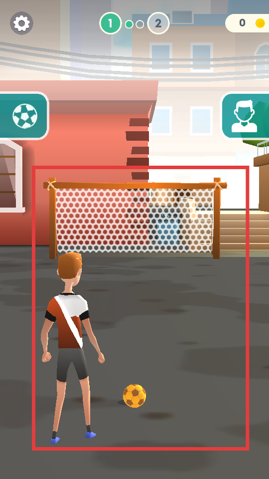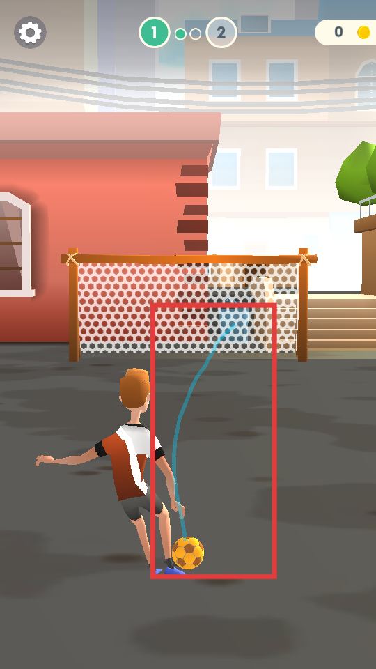 1、进入游戏,观察红框内场景,【滑动屏幕】画线准备进行射门操作。