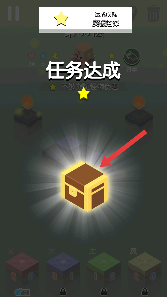 4、成功达成任务后,点击宝箱获取奖励,继续挑战后续关卡。