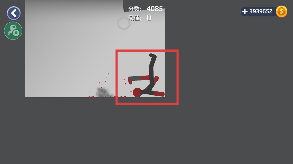 3、火柴人坠落过程中,尽量制造复杂的受伤或翻转效果,如图中让火柴人以特殊姿势落地,获取更高的伤害得分和翻转得分。