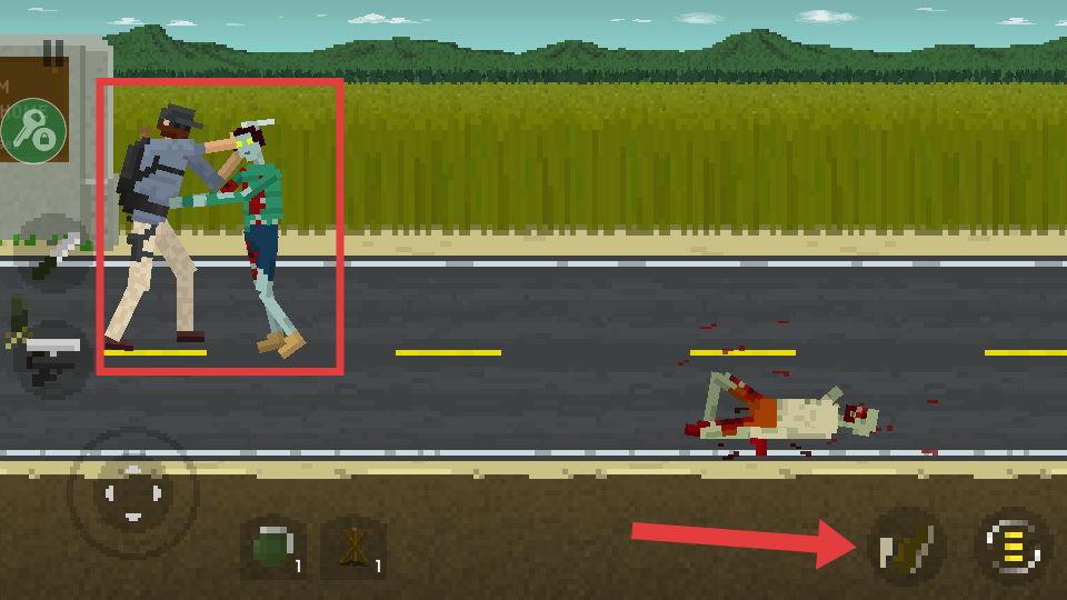 3、当僵尸靠近时,点击【踢】将僵尸踢开,再利用武器将其击杀。
