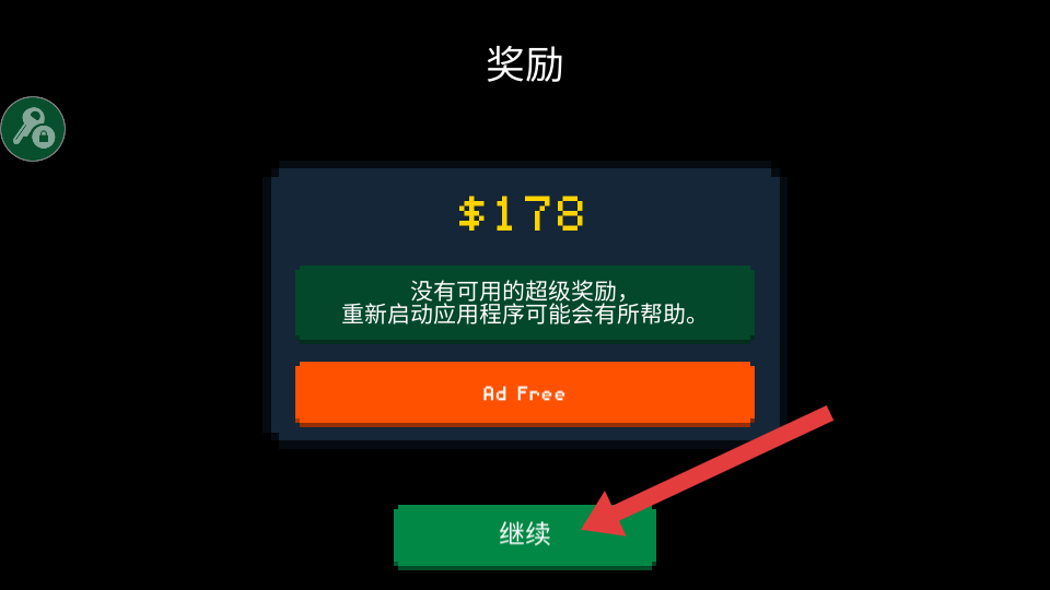 4、完成战斗后,在奖励界面查看获得的金币,点击【继续】按钮,返回主界面。